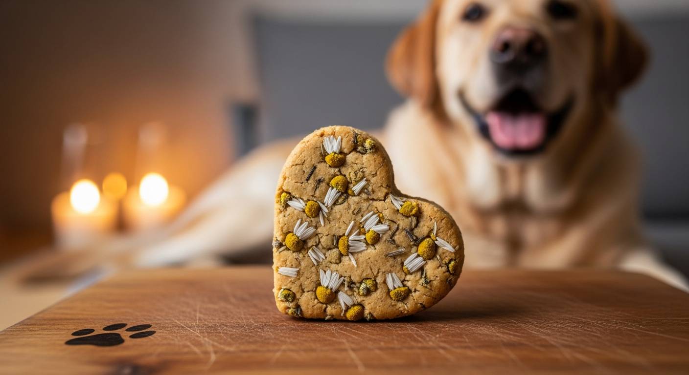 次に、ストレス軽減に特に効果的なのが、ターキーとカモミールのクッキーです。七面鳥に含まれるトリプトファンはセロトニン生成を促し、カモミールには自然な鎮静作用があります。挽いた七面鳥肉、少量のカモミールティー、オートミール、卵を混ぜて小さな平たいクッキー状にし、160度で20分焼きます。